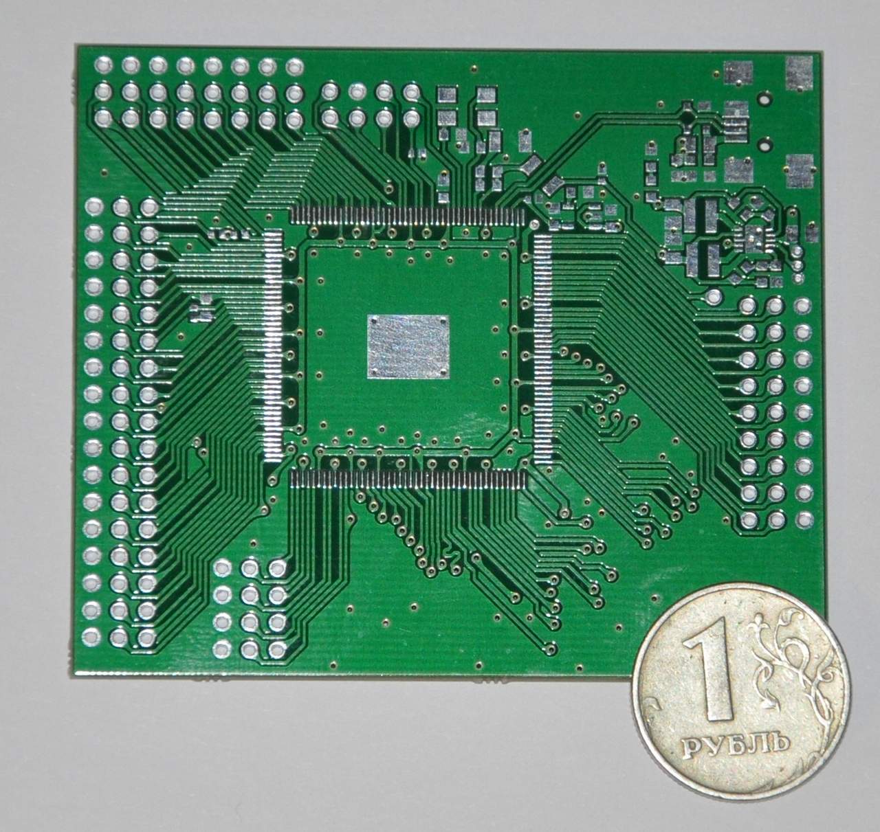 Процессор - ДСП ТИ C6745. Снизу оперативка 32 МБайта 133МГц и НАНД-флеш на 128МБайт. Но я думаю нанд не впаивать, а подвесить снаружи СПИ-флешку на 8МБайт.