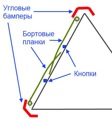 Однако из-за конструкции уборщика, не получается ни сверху ни снизу пристроить ентот ролик. Дело в том, что снизу (на вершине) крутится радиальная щетка - место занято. А сверху - это съемный контейнер (на рекламном видео видно как его чувиха снимает) из которого нужно и грязь вытряхнуть и даже помыть под струей воды. Остаются только бока, т.е. весь периметр уборщика, но строго сбоку. Вот тут и пытаюсь разместить все датчики, но так, чтобы они минимально увеличивали габариты бота. Самый минимальный размер дают ИК датчики (из мышей по-моему), но о них я писал выше. Поэксперементировав с мелкими роликами, ничего хорошего не добился, все равно мертвые зоны есть... Возвращаюсь к кнопочно-пластинчатому бамперу, только пластин теперь будет три (две прямые и одна изогнутая в вершине). А кнопок: на каждой пластине по две. Фиг с ним пусть "шоркает" вдоль стены, не так это и страшно...