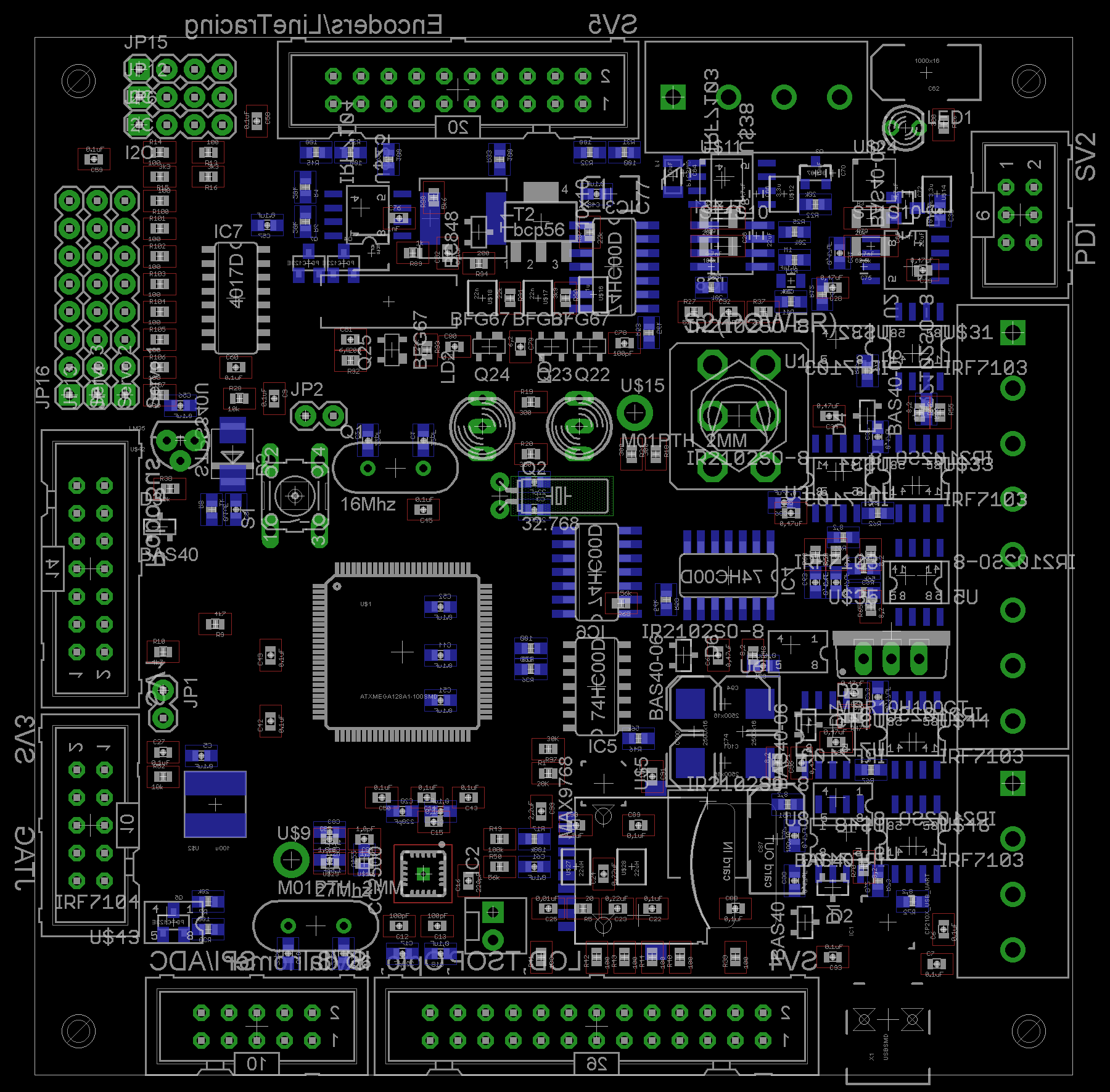 Переделал заново расположение компонентов на ПП, прилагаю общий рисунок и отдельно по каждой стороне. До конца недели разводка платы будет готова