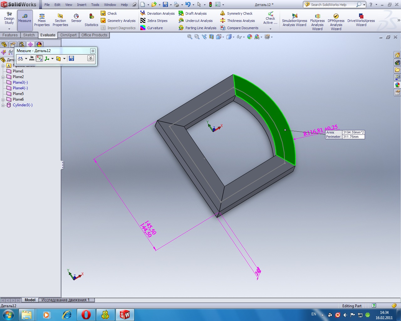 где в солиде посмотреть площадь поверхности одной стороны детали?