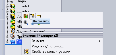 Суть в том что открываем панель работы с лист металлом, выделяем модель, преобразуем в гнутую форму металла, затем отображаем развертку.