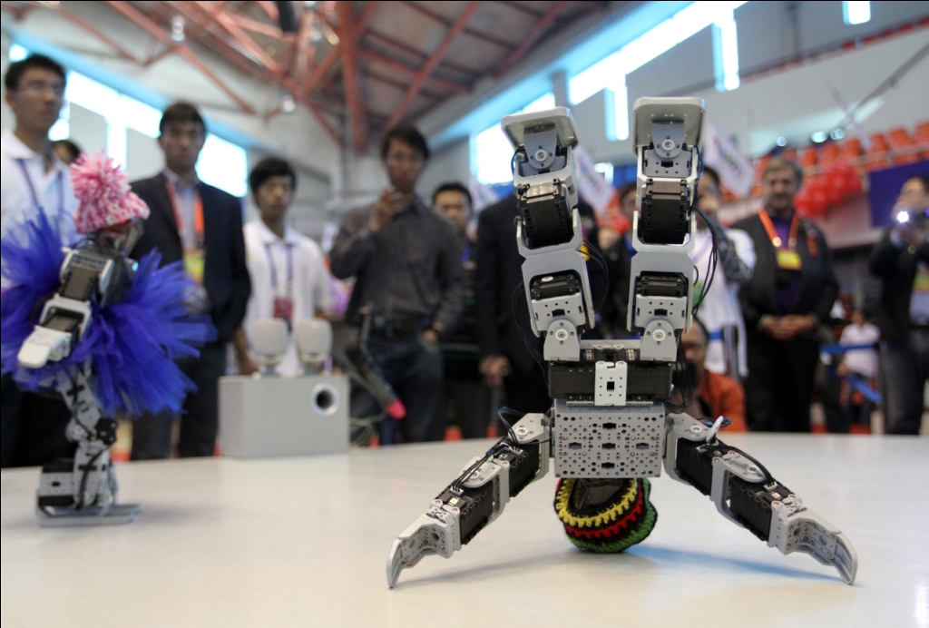 Добавлено спустя 10 минут 57 секунд: Какие роботы там были? Самый узнаваемый робот это Bioloid. Также там были какие-то аналоги Robonova (м.б. китайские аналоги), потому что программировались они через ту же среду и таким же образом, как и Robonova (заданием положения моторов и пауз). Это самые узнаваемые участники гуманоидных состязаний.