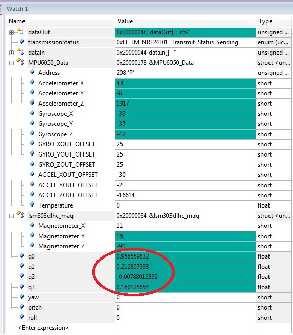 Как должны выглядеть данные кватернионов из фильтра Маджвика ?