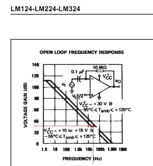 . На 40 кГц усиление чуть больше 20 дБ, графики даны для 10В и 15В питания, а у меня вообще 5В.