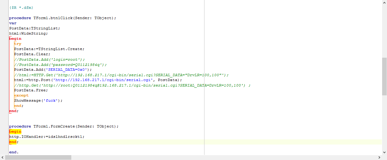 Вот через браузер все работает. Но! Мне то нужно писать различные алгоритмы движение и опрыскивания и т.д. тоесть управлять роботом при помощи приложения. По скольку я программист на Delphi, то его и выбрал в качестве языка программирования. Ну так вот собственно вопрос: когда я через ва-фай/провод на прямую к роутеру пытаюсь послать команду на контроллер мне выдается ошибка 502, скрин прилагаю...при чем забавно то, что когда смотришь сетевым сканером то управляя через браузер эта же ошибка возникает, но браузер на неё не реагирует и команда проходит - робот едет. А когда пишешь прогу ошибка вылетает - но команда не проходит - робот стоит...Вопрос как программировать ели это по ходу какая-то ошибка прошивки? НУ, и где искать проблему и что с ней делать?