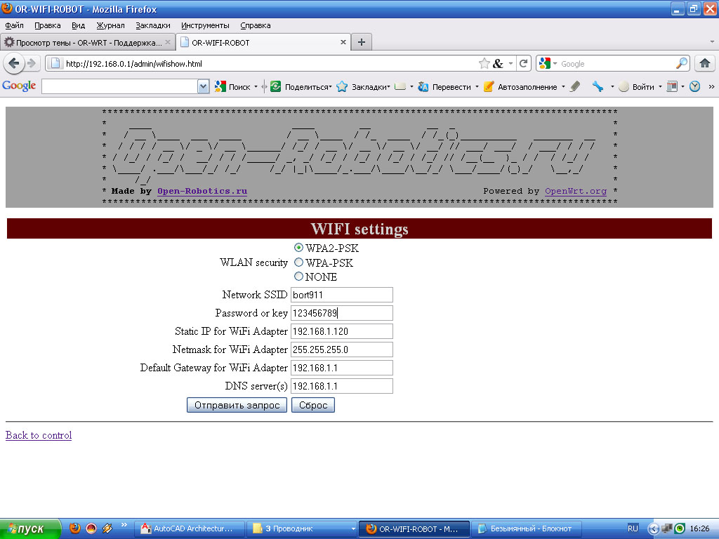 Настройки IP оставил дефолтовые: 192.168.0.1 для LAN и 192.168.1.120 для wifi.