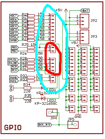 Зато я час потратил чтобы соотнести схему и плату, т.к. на схеме контакты в GPIO не подписаны и я стал считать их по порядку сверху вниз. И нашел это несоответствие. не хотите передвигать ничего, так хоть подпишите в этой части схемы ламели. Я искал куда диоды подключены.