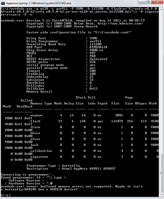 Через putty, терминал и ком порт тулкит совсем не умеют читать. Перепрошил нормально, последней (orfa-v0.9.0-b3). Странно, сейчас на новом контроллере то же самое. Может, со стороны регуляторов что-то накрылось, хотя при подключении питания они так же пищат-моргают-дёргают двигатель в ожидании сигнала. Раньше сразу замолкали, как к контроллеру подключал. В общем, не знаю, буду копаться, перепроверю всё.