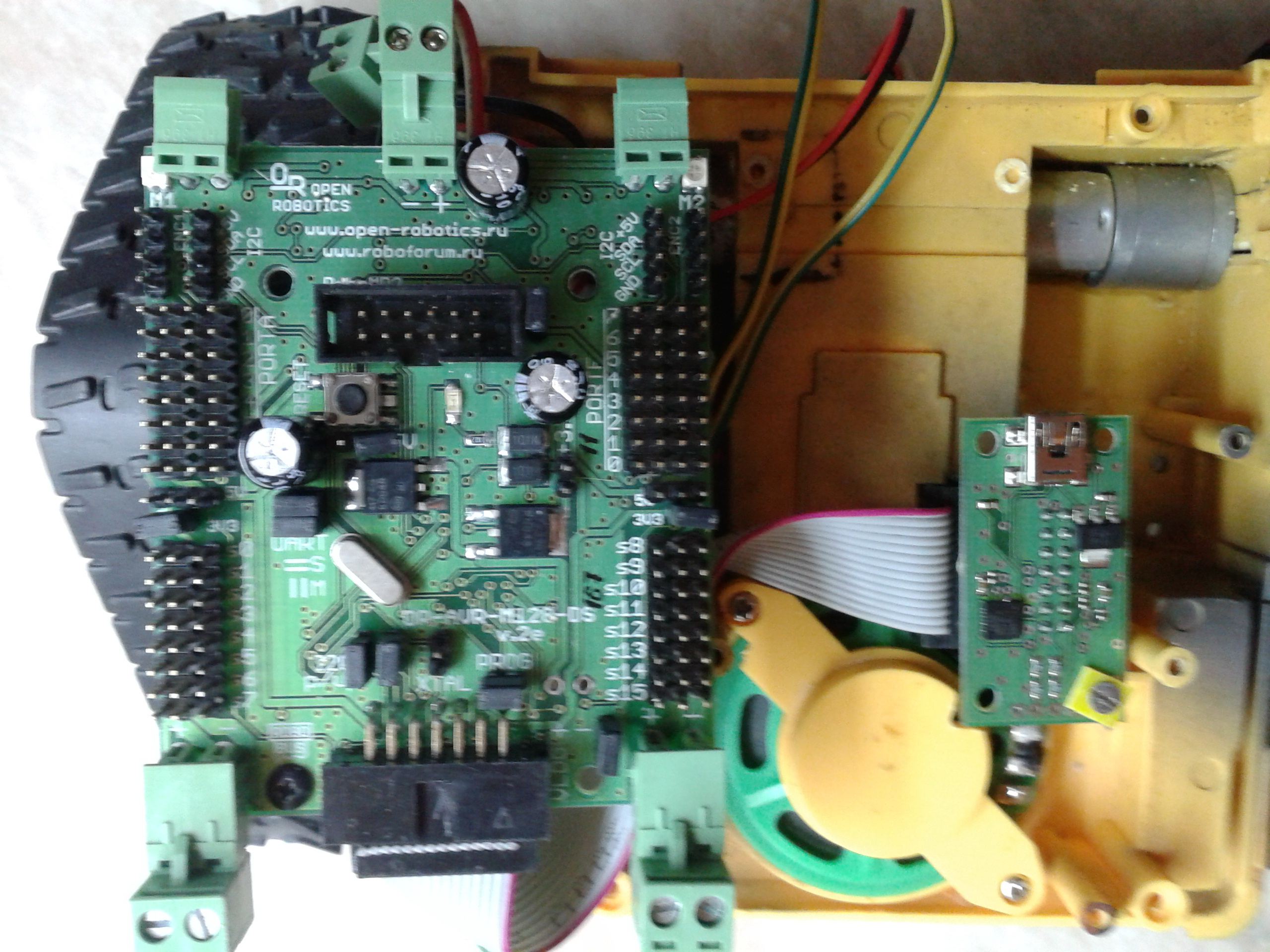 На фотке плата откручена специально, чтобы виден был шлейф, а вообще она стоит бутербродом на стойках над OR-USB-UART.