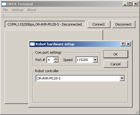 - Выбора COM-порта и скорости работы;