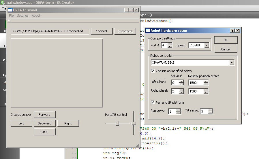- Настройки номеров сервоприводов шасси и pan-tilt платформы;