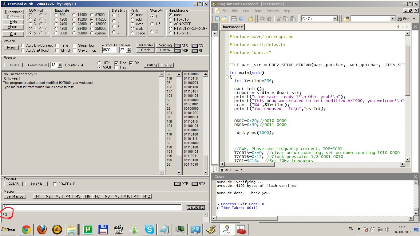3. Если грешишь на мост сделай апартный loop (TX на RX) в робобас и прогони тест через терминалку.