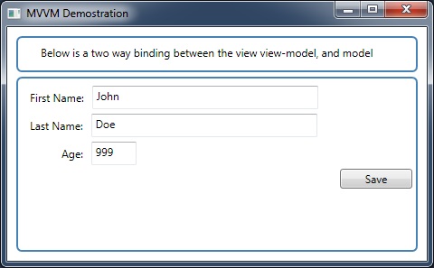 Title="MVVM Demostration" Height="297" Width="480"