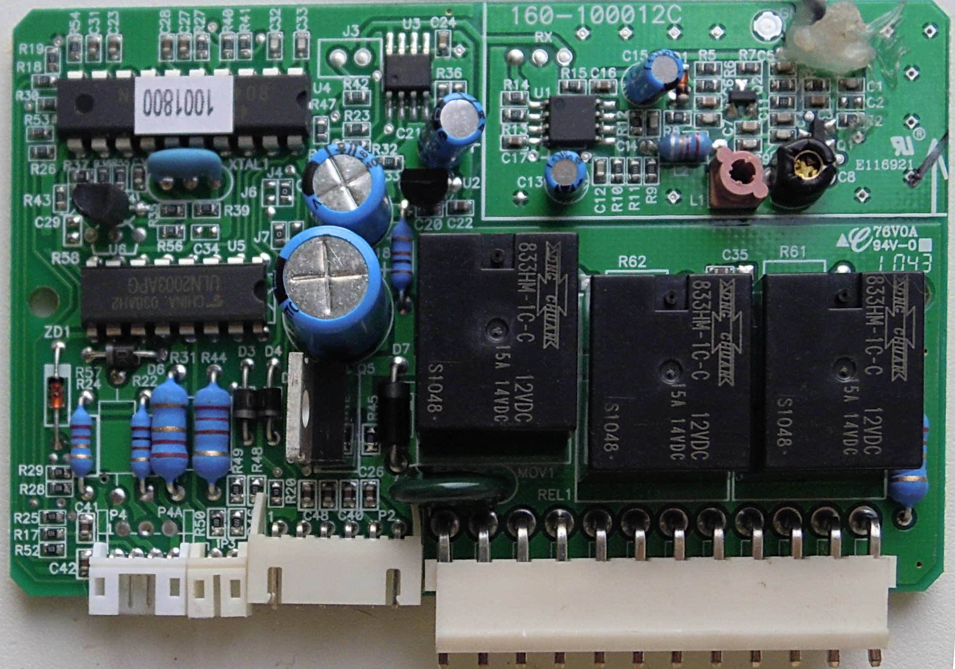 радиоприёмная часть сделана в виде модуля в углу платы, от неё идёт Rx к основной части платы.