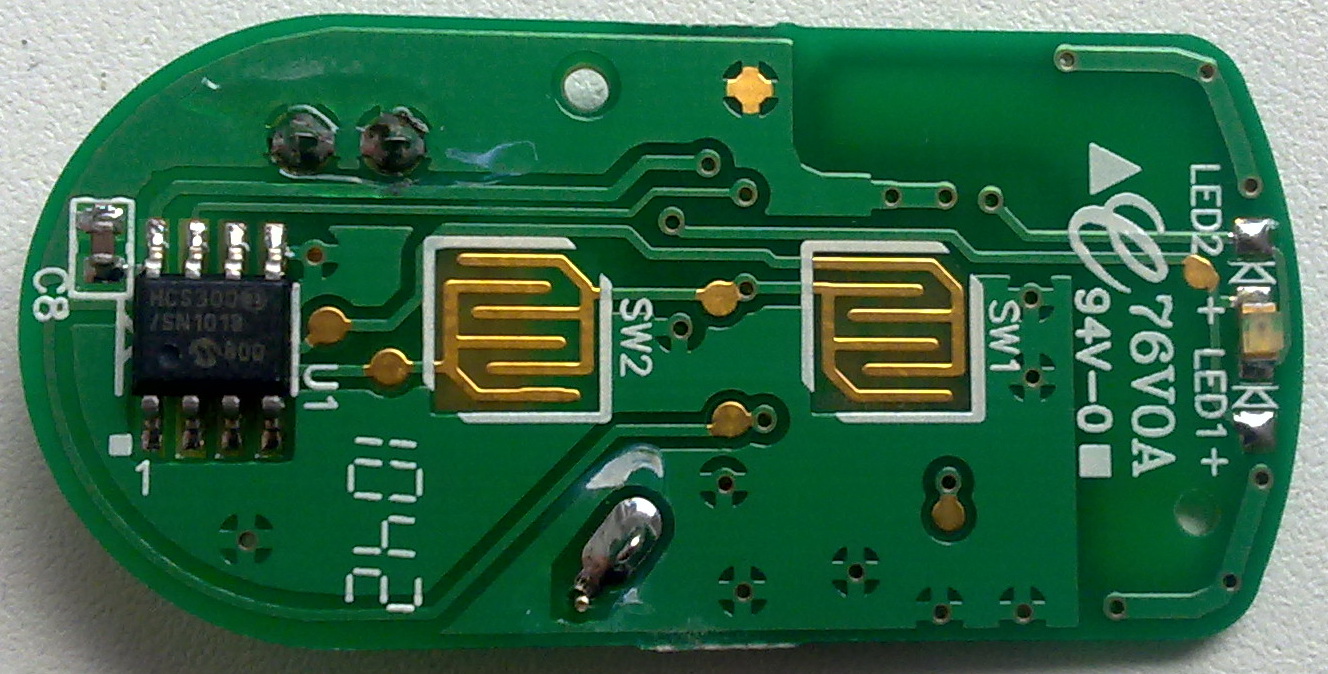 радиоприёмная часть сделана в виде модуля в углу платы, от неё идёт Rx к основной части платы.