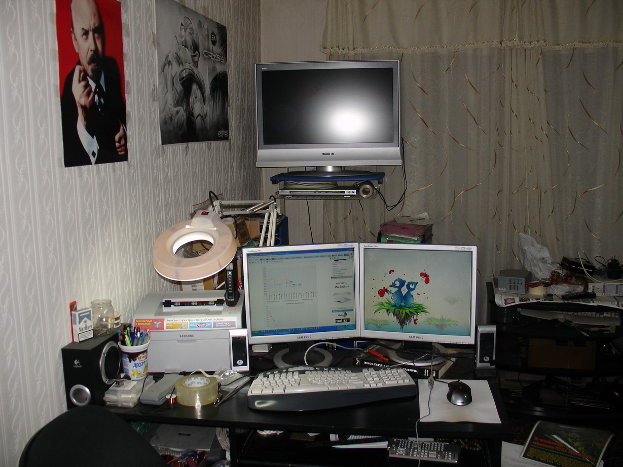 хоть вся квартира при необходимости трансформируется в рабочую зону (серверная, программерская, для радио дел) и обратно.
