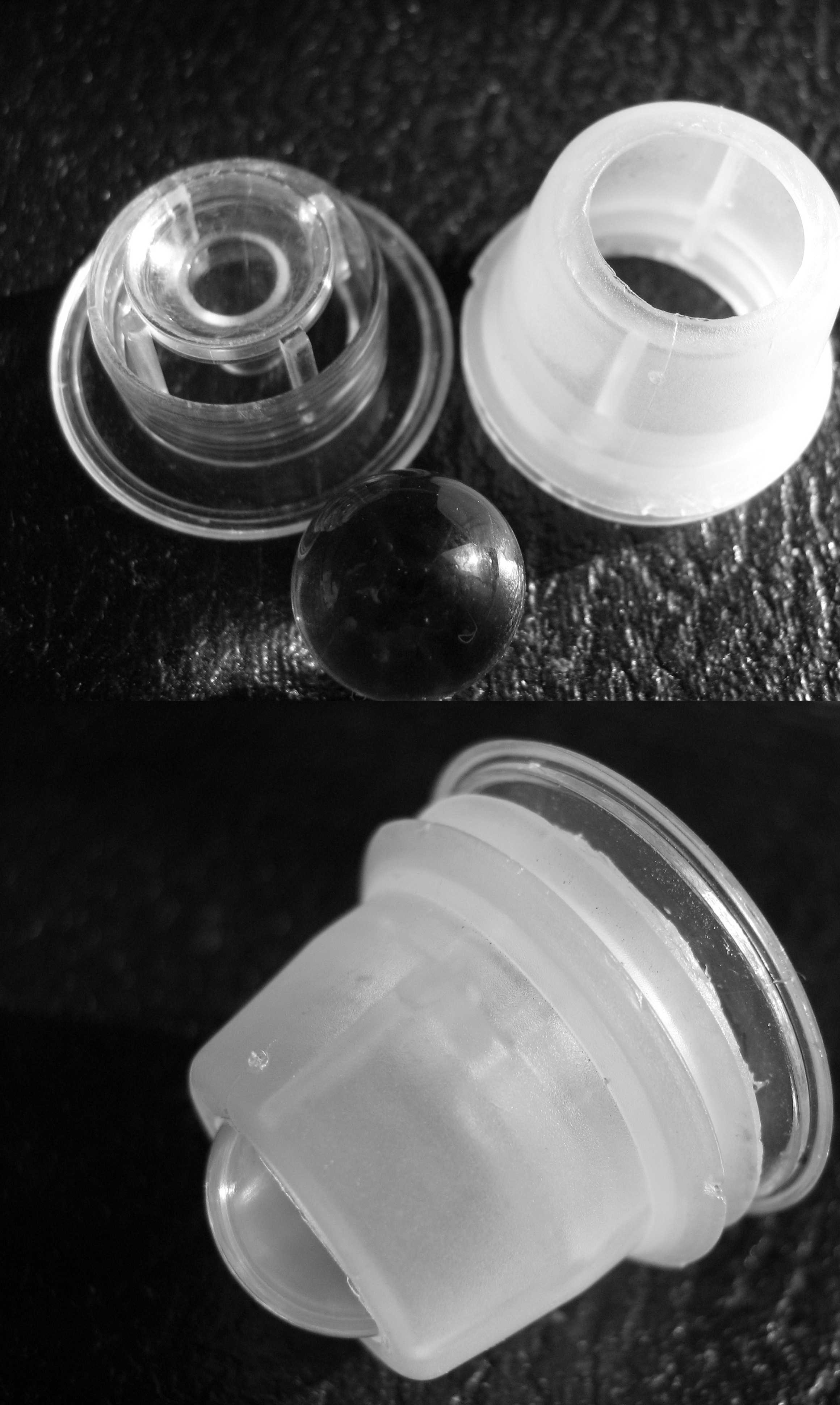 А вот если стеклянный - тогда удача! Клапан за "юбочку" по кругу ножичком аккуратно постепенно вытаскивается. Затем клапан разбирается, немного укорачивается одна часть (ножом, см. фото) и собирается обратно, так чтобы шарик свободно вращался, но и не утопал. Насчёт того, что он что-то намотает - не наблюдалось, ну пылится конечно (как собсно и ведущие колёса), но для квартиры вполне приемлемо. :)