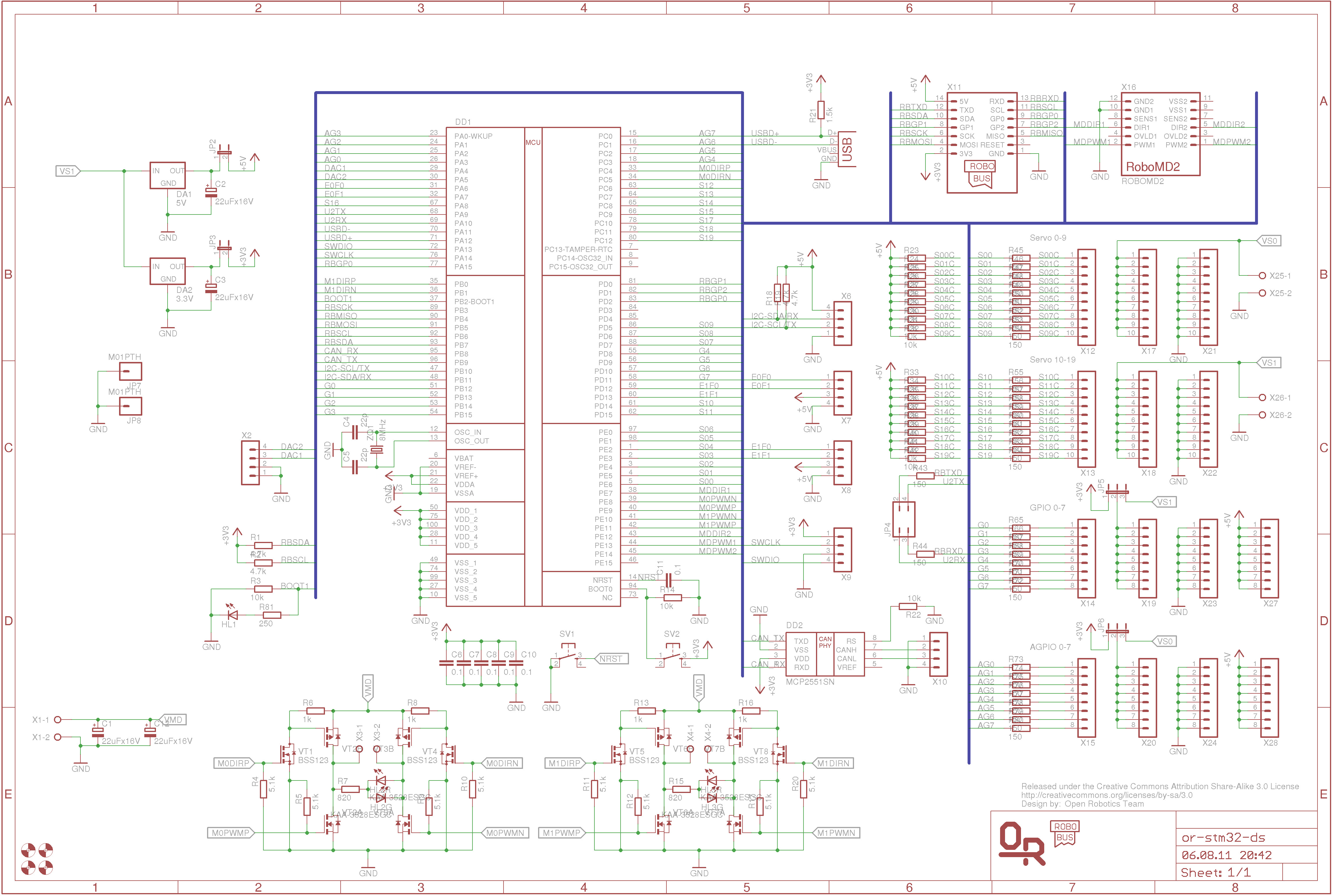 1. С3 и C4 перекрывают линейники - это плохо. Желательно разнести. 2. Кнопки BOOT0 и RESET куда-нибудь выводами продублированы? В части конструкций туда будет просто не подлезть. 3. Подписи + и - по питанию серв для прикола местами поменяны? 4. Светодиод HL1 не подписан. 5. Желательно хотя-бы 1 светодиод управляемый с МК - всё на наши OR-AVR-M128-* забываю поставить
