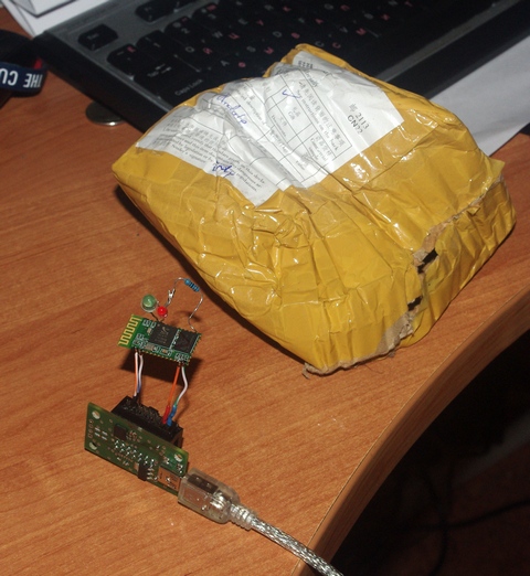 Наконец-то пришли HC-05. Шло полтора месяца, коробка была в таком состоянии, будто ее слону в задницу засунули. Один модуль припаял на соплях, все сразу заработало. Себе возьму 3, 7 отдам в хорошие руки. Dmitry__, тебе сколько? Остальные кому?