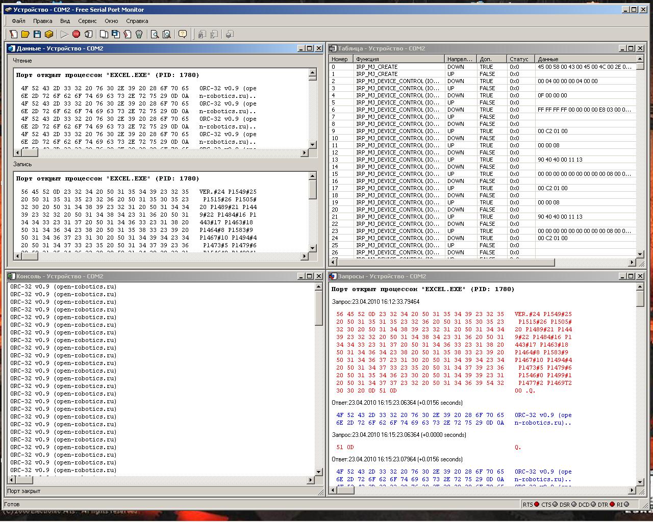 хотя конечно можно на всякий пожарный запустить сниффер СОМ-порта и глянуть что там происходит детально.