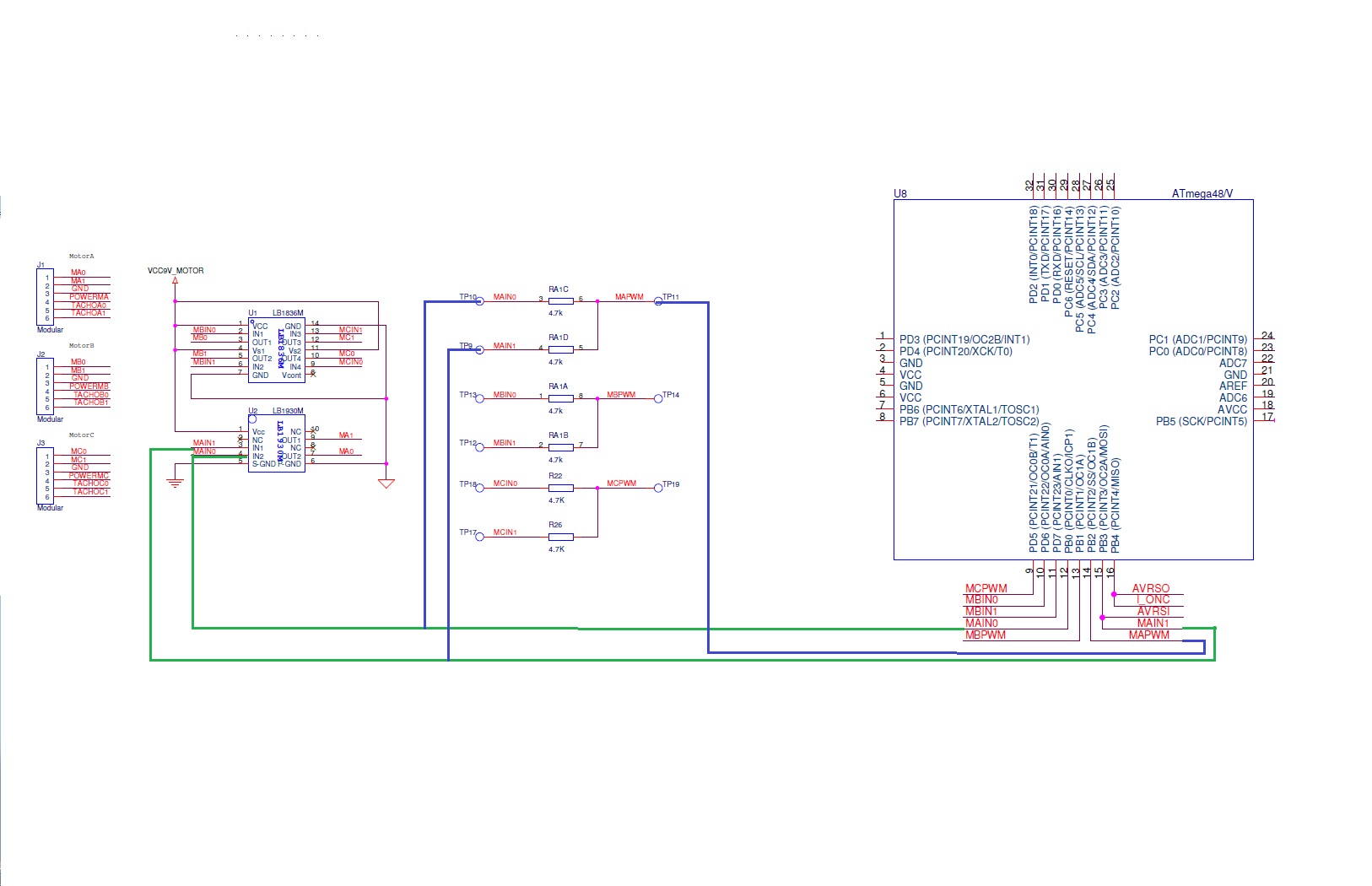 В общем сигналы MAIN0 и MAIN1, которые управляют мотором, идут от ATMega к драйверу шагового двигателя. Но от меги идет еще сигнал ШИМ MAPWM, и получается этот сигнал подключен параллельно через резисторы к тем же входам на драйвере, что и сигналы MAIN0, MAIN1. Как тогда осуществляется такое управление?