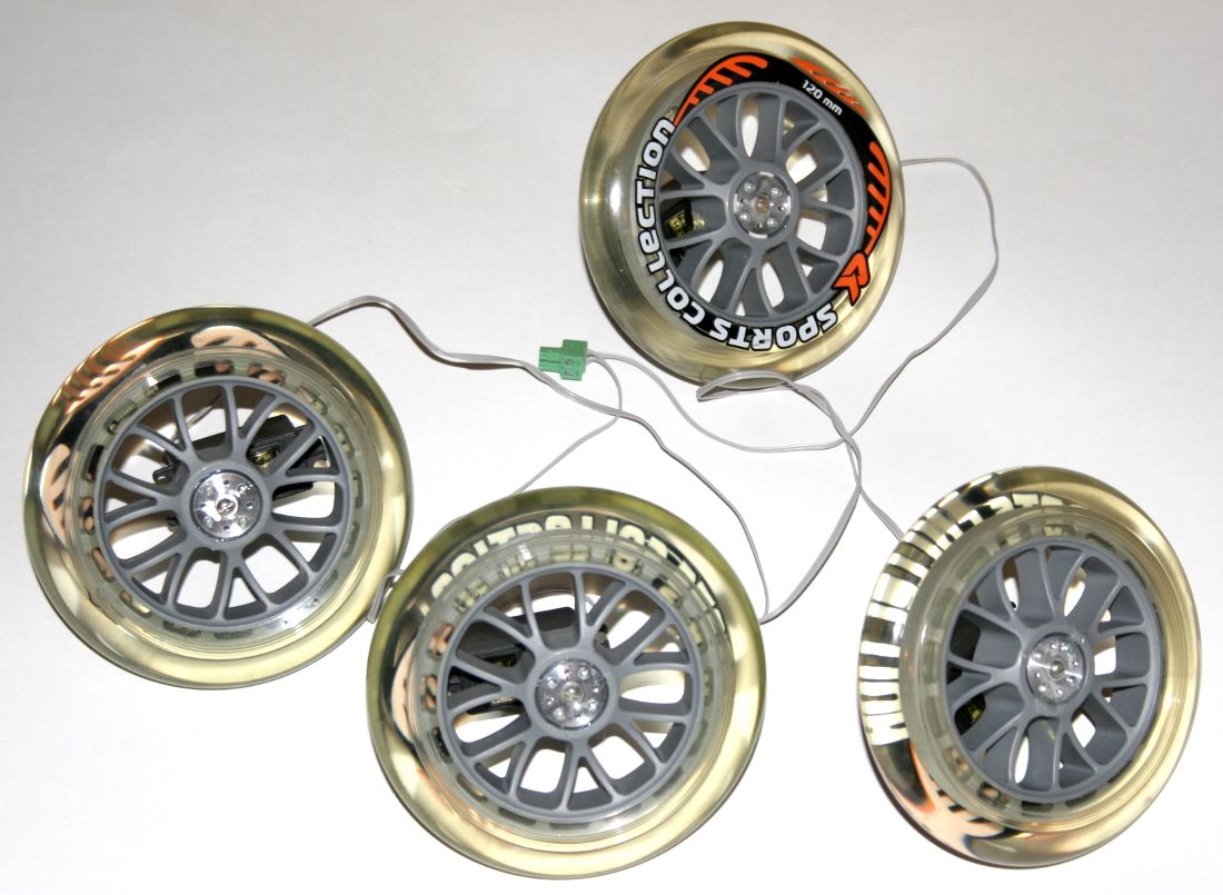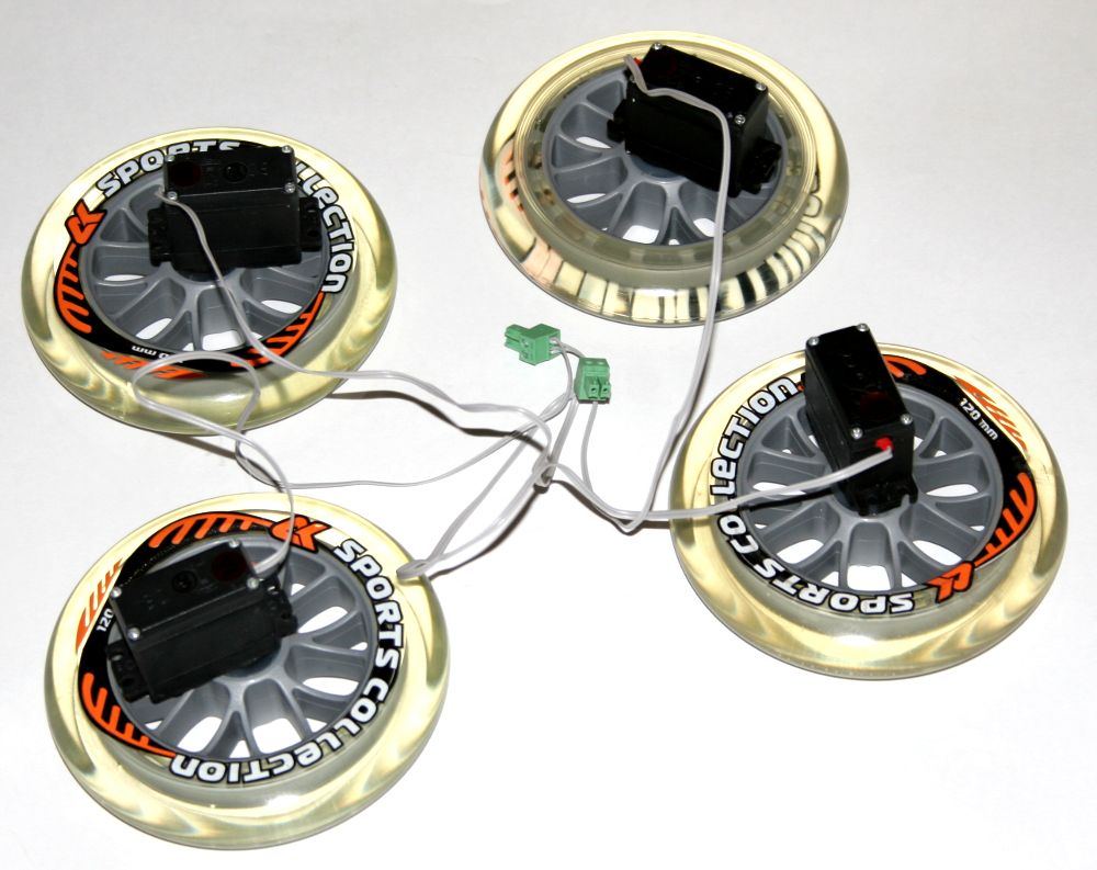 встречайте, версия 2.0, колёсный узел на базе модифицированных HXT12k с использованием колёс от самоката или роликовых коньков!