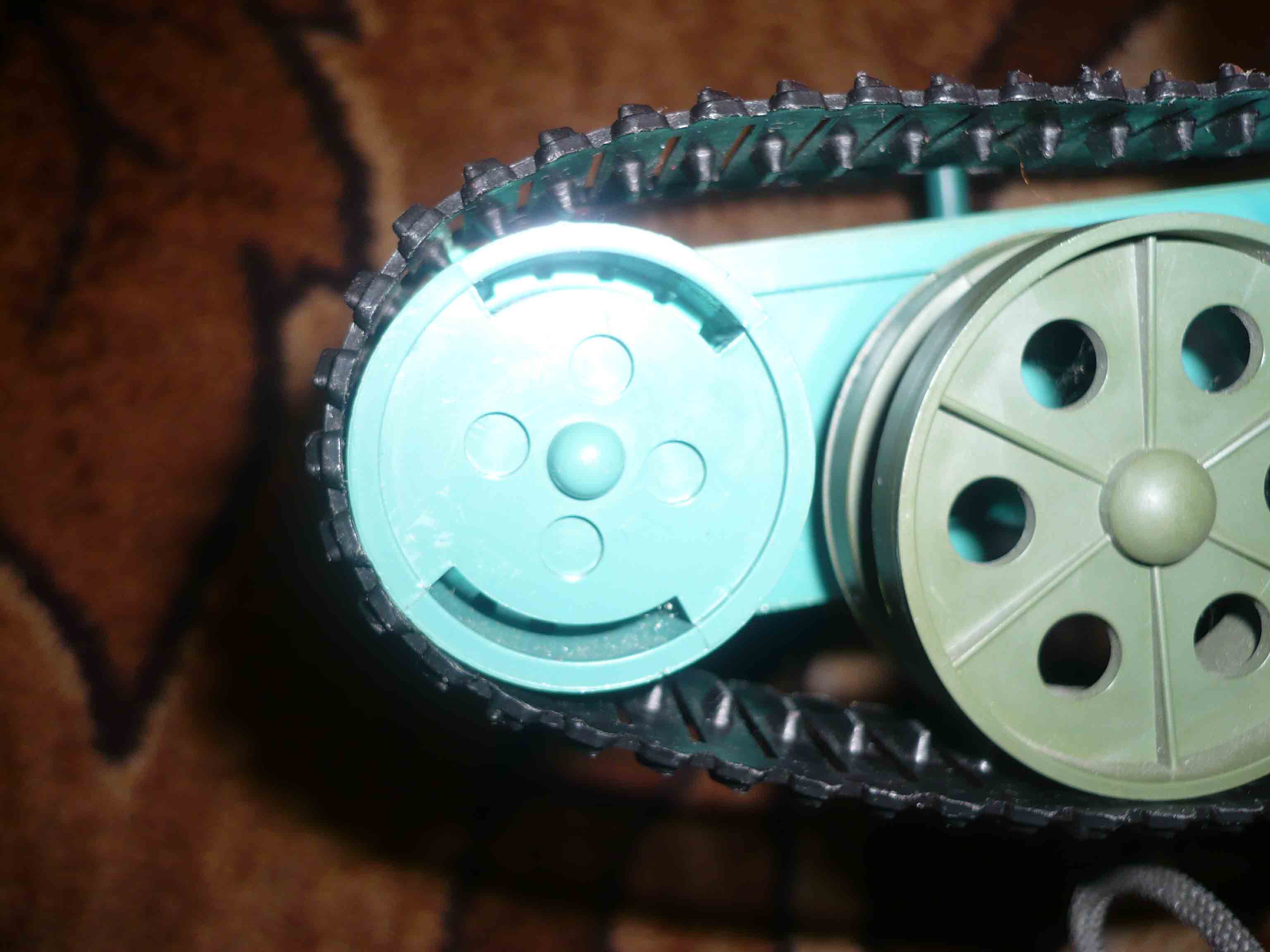 Недавно я у себя в закромах обнаружил вот такой вот игрушечный танк:Правда, это он не весь, у него ещё есть башня, но это неважно. У меня появилась задумка сделать робота. Благо, опыт работы с паяльником есть и довольно большой! Вся проблема встала в механической части. Вопрос в том, как закрепить ось редуктора к ведущему колесу. Ну никак не могу додуматься, зациклился и всё. Ось довольно тонкая - 2,5 мм. Подробные фото оси редуктора с шестерёнкой и самого колеса прилагаю. Очень надеюсь на вашу помощь!
