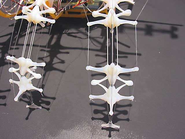 В данной конструкции каждая фаланга способна двигаться независимо (при сгибах фаланг движение троса минимально). Тросы можно передвигать с помощью «наматывания-разматывания» или применить миниатюрную швп.