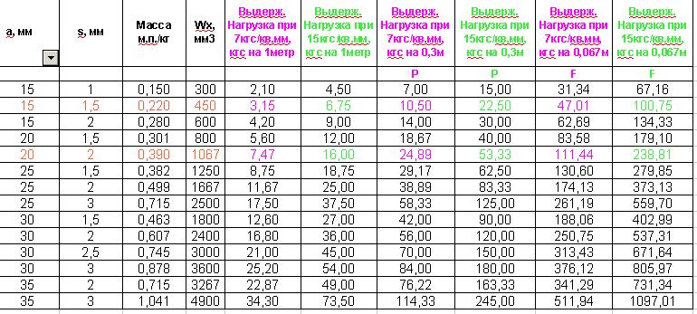 и Выдерживаема нагрузка (кгс/м) = 15(кгс/кв.мм) * Wx(мм3) / 1000(мм) во втором случае.