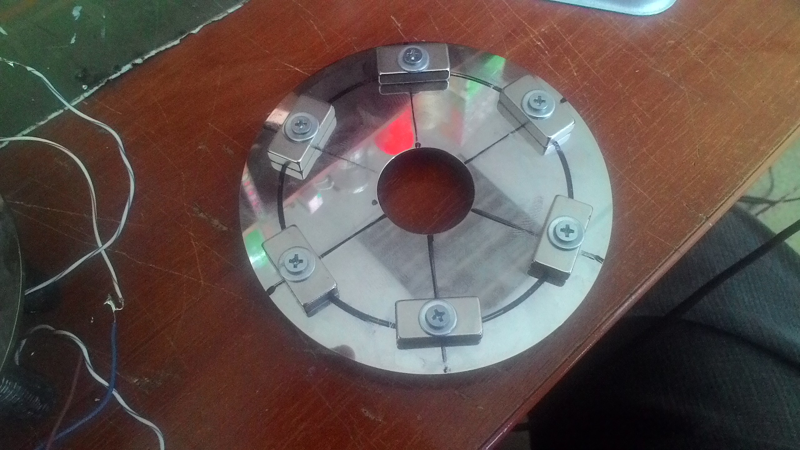 Блин, я то думал, что магниты с дыркой как раз помогут мне их нормально винтами прикрепить к ротору, а тут фиг - надо разной полярности. Перевернуть их не получится, они раззенкованы только с одной стороны. Придется что-то придумывать. Для тестового стенда не хотел заливать компаундом магниты на роторе, а просто на клее магниты у меня не держаться, пробовал уже несколько разных - через некоторое время отлетают при усилии.