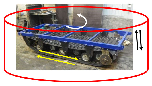 Моя идея не совсем обычной коонструкции управляемой гусеничной платформы, заключается в том, чтоб ее можно было перемещать по оси Y для подъема внутри опорного стакана, далее вращать под любым градусом, опускать и продолжать движение под заданным углом. Опорный стакан во время перемешения платформы поднят. Как вращать гусеничный блок внутри опоры, мне понятно, не решено движение по оси Y. Хотелось бы весь этот алгоритм реализовать на двух моторах. Мотор привода гусеничного трека может выполнять и вторую функцию вращения.