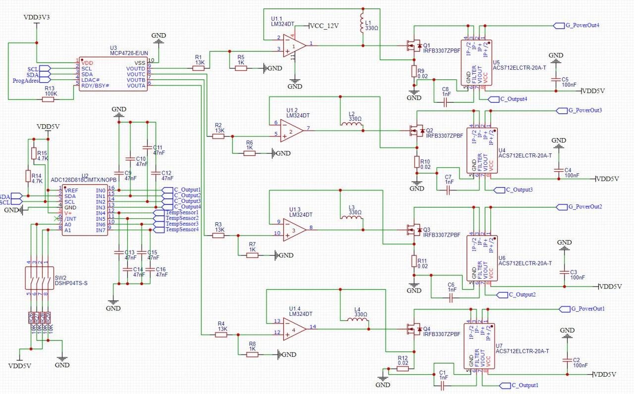 drive of 1.4 A. One Peltier module was with PWM current, and the other one was with constant current