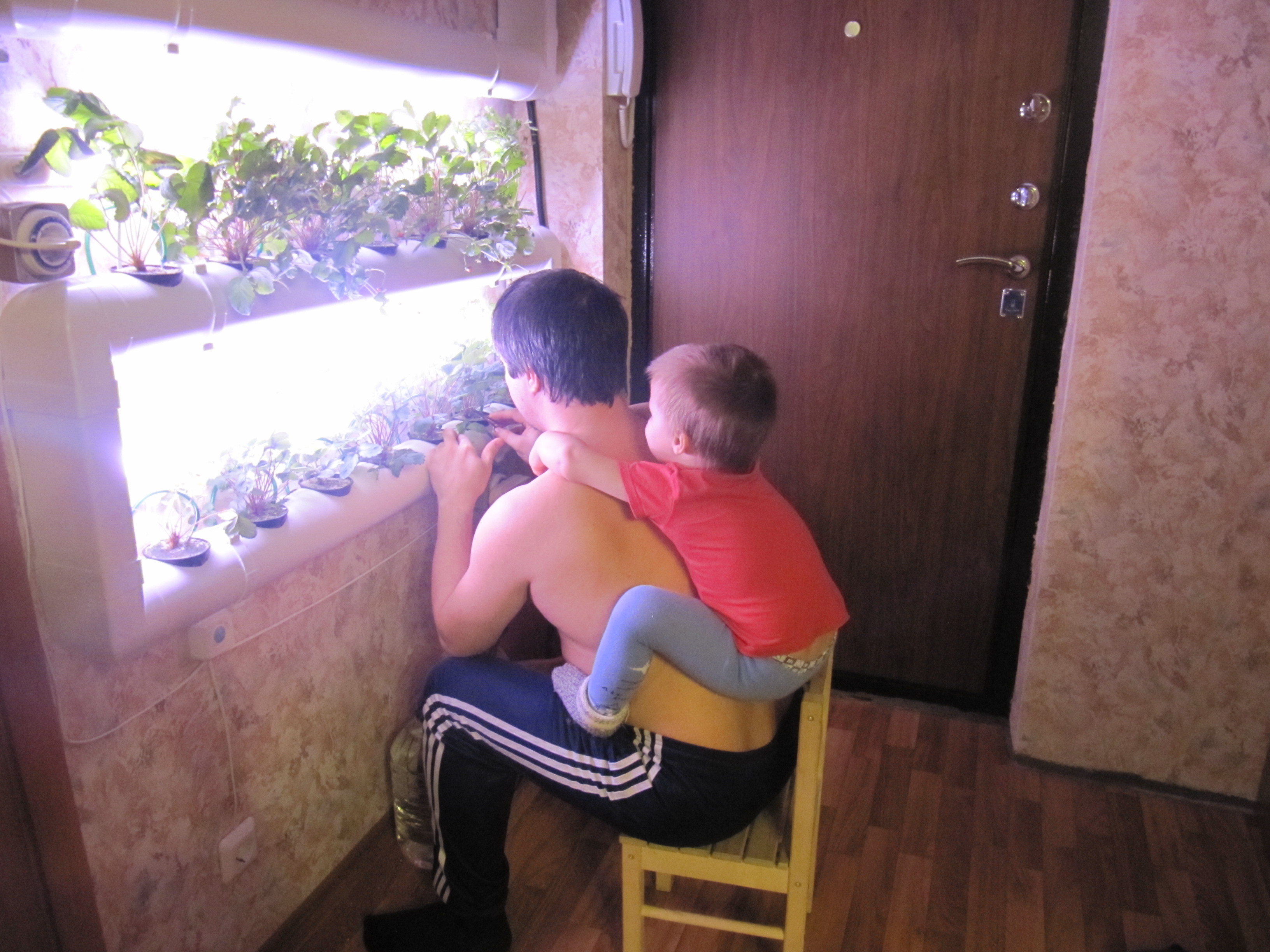 Правда усвоил одну важную вещь, что когда выращивается клубника на гидре, она не любит когда ее даже опрыскивают простой водой для поднятия тургора, как это обычно делают с растениями в теплицах. От опрыскивания водой практически на следующий день начинают гнить стебли с листьями, про опрыскивание различными препаратами и говорить не приходится. Возможно это от того что у меня клубника выращивалась не на субстрате, как это обычно делают люди, а просто в стаканчиках в емкости с раствором, удерживаемая в стаканчике губкой, через которую проращивалась. Видимо от этого сами растения получались пересыщенные влагой и от этого и не любили опрыскивания по листу.