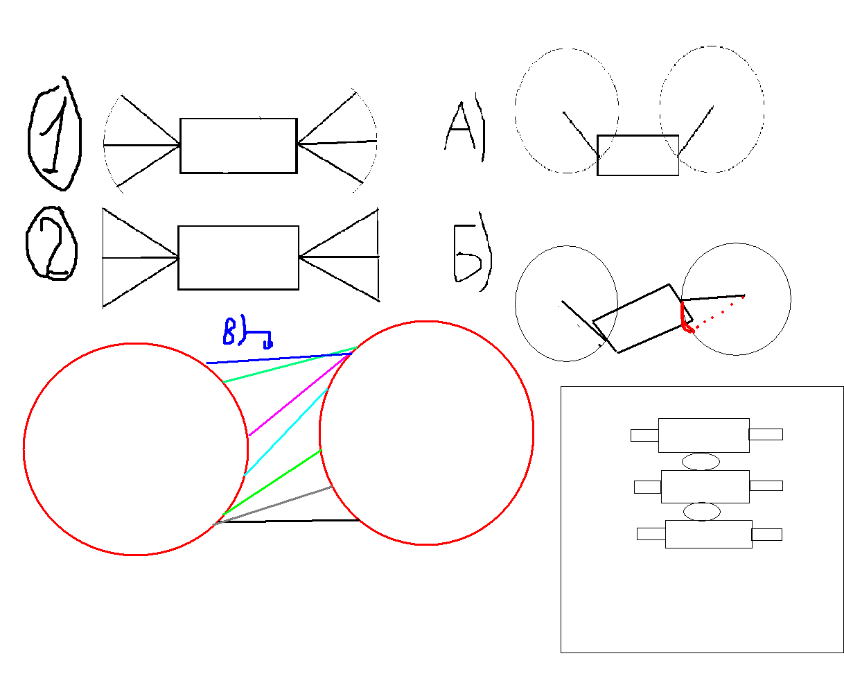 Народ...Нужна помощь по организации движения n-ногой конструкции ,вернее, одного из её звеньев с двумя опущеными ногами... кто-нибудь знает как продвинуть такую конструкцию из состояния "а" в состояние"в" кроме варианта'б', чтобы ликвидировать интегральные вычисления и работу с Цапом...