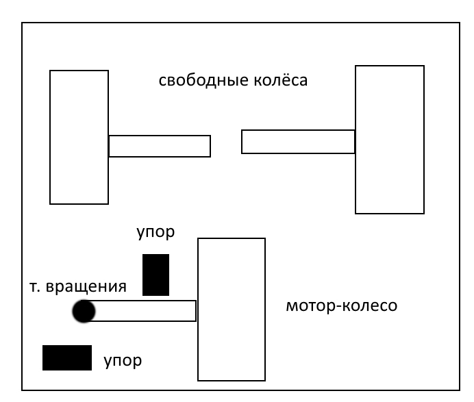 Была такая однокомандная р/у игрушка - автомобиль. Задний мост - просто привод от электромотора А передний, на шарнире, и когда даёшь задний ход, то машинка начинала разворачиваться.