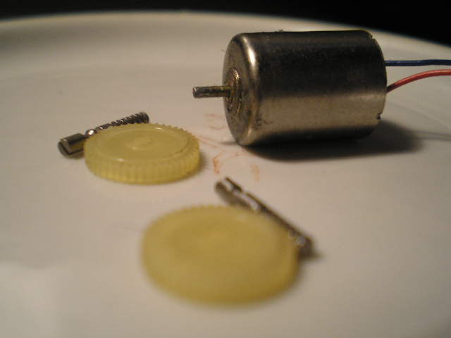 Однако (сознаюсь) пристроить на этот редуктор ещё две шестерни - задача не из лёгких, тем более что шестерни от маленьких мех. часов.