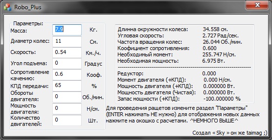 далее "Мощность N(Вт) определяется по скорости движения V(см/сек) и силе сопротивления движению F(кг): N = (F x V)/10"