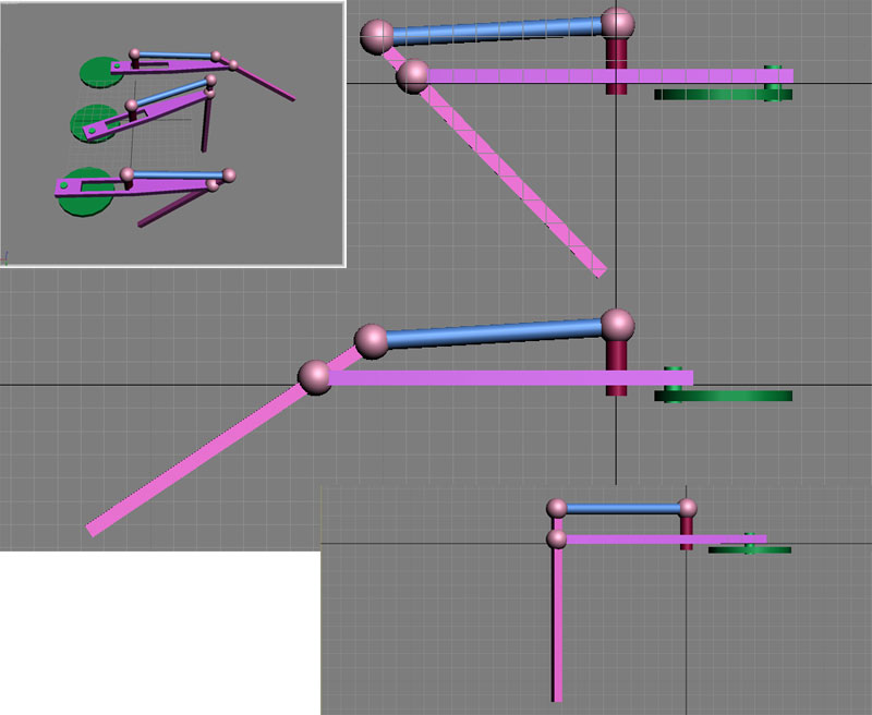 Если бы окружность рисуемая концами ног была перпендикулярна плоскости по которой движется, а смена ног происходила в строгой очередности, то это было бы справедливо. А проекция сей окружности на плоскость - эллипс (а он как известно имеет два диаметра... точнее радиуса), а эллипсная дуга больше приближена к прямой, нежели дуга окружности.. Кроме того длина дуги соприкосновения зависит от периода смены пары и одной ноги (которая несколько длинее и "выпячена" относительно двух других). Так как сменяющие друг-друга ноги имеют разные (мягко говоря) траектории, то и момент смены ног наступает не строго по окончанию фаз, а несколько раньше. Отсюда сохраняемая устойчивость робота. Ведь при смене ног в строгом соответствии с их фазой, устойчивость робота гарантирована только при синхронизированом движении ног обеих сторон (я имею ввиду 6-ти нога. При 8-ми ногах это не обязательно), здесь же реализуется то, что называется "торможением в движении", ещё не закончила своего движения средняя нога (мешая движению), как две других ужЕ стараются двигать робота. И наоборот...