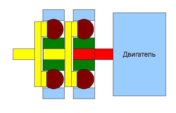 Кстати, была где-то схема редуктора, сделанного из подшипников. Принцип в том, что если внутренняя обойма вращается, а наружная стоит, то шарики с сепаратором вращаются вдвое медленней внутренней обоймы.