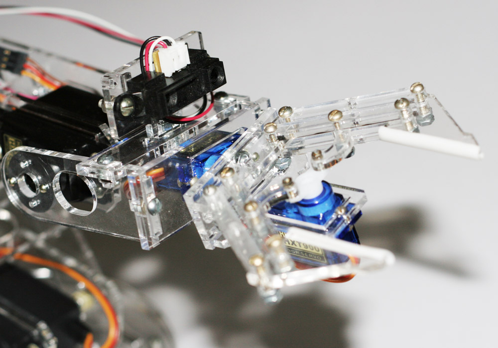 Помнится еще просили крепеж для датчиков, вот, в финальной версии сделал (пластина под ИК-дальномером стандартная, на неё естественно будет садиться SRF08 и такого же типа сонары Devantech):
