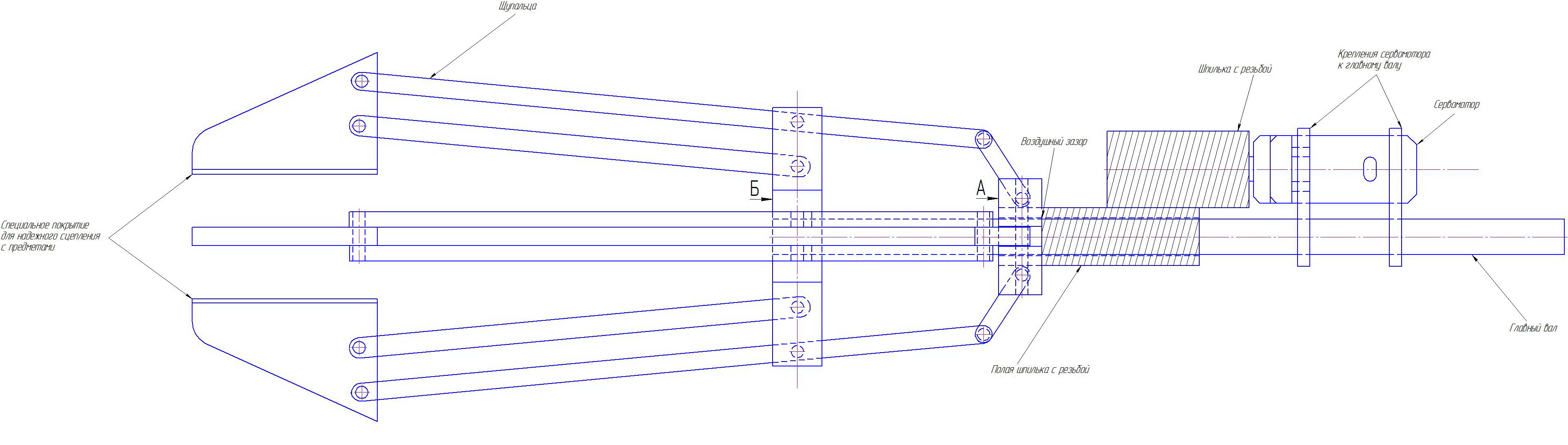 Захват. 4 щупальцы, закреплены на большом и малом крестце. Большой крестец закреплен на Главном валу. Малый крестец может двигаться водоль ГВ.