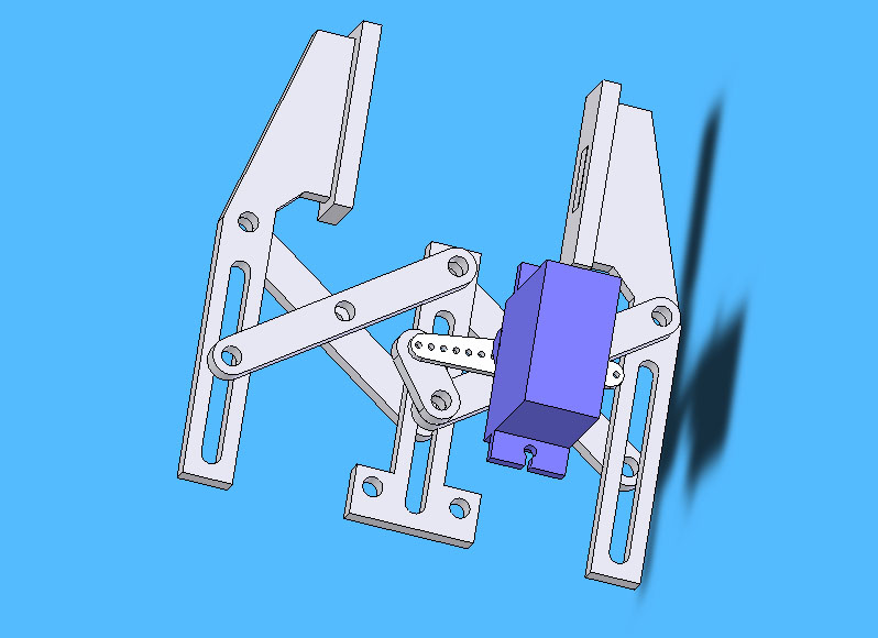 , не смотря на отсутствие люфтов и максимально возможное свободное вращение и перемещение шарниров (какое только можно обеспечить при настольном изготовлении) усилия сервы не хватает, заедает постоянно...
