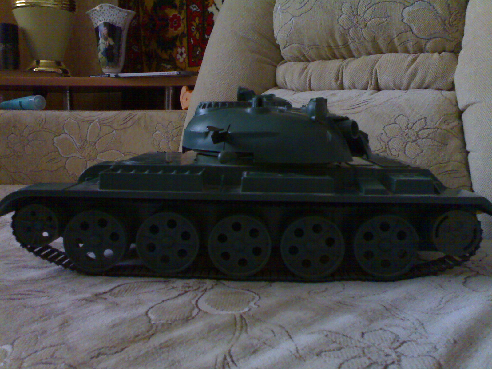 Одни двигатель на поворот башни, второй на привод траков.