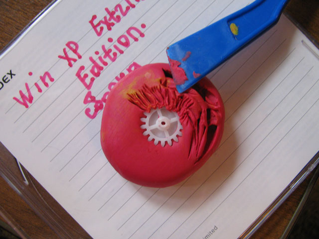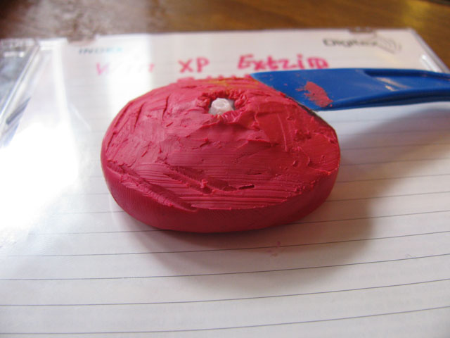 так как зубья не очень хорошо сформированны то с помощью палочки затыкаем их пластилином поплотнее