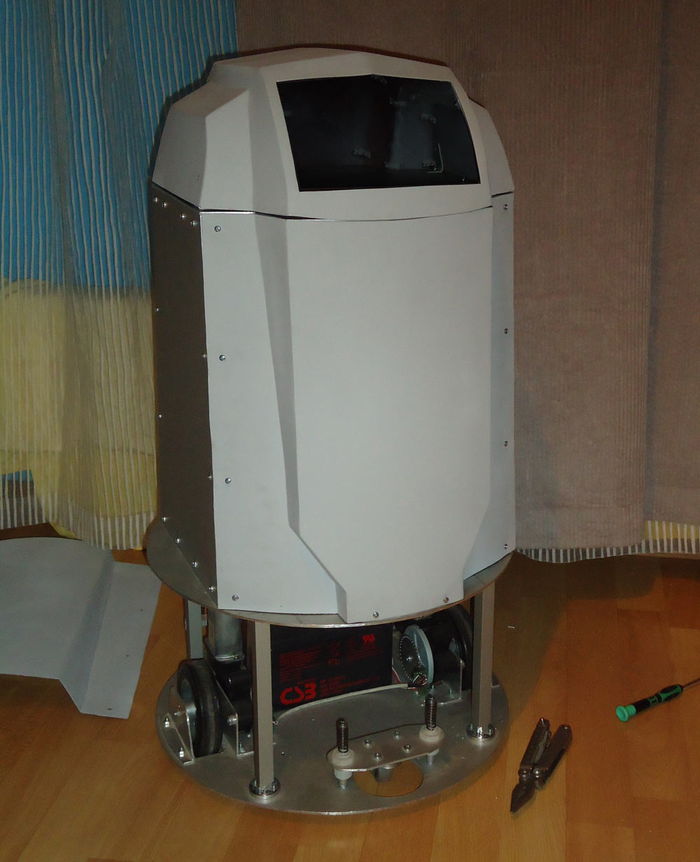 На данный момент сделаны чертежи корпуса(туловища) и головы дроида. Изготовление отложено до наступления длинных зимних вечеров (и ночей)