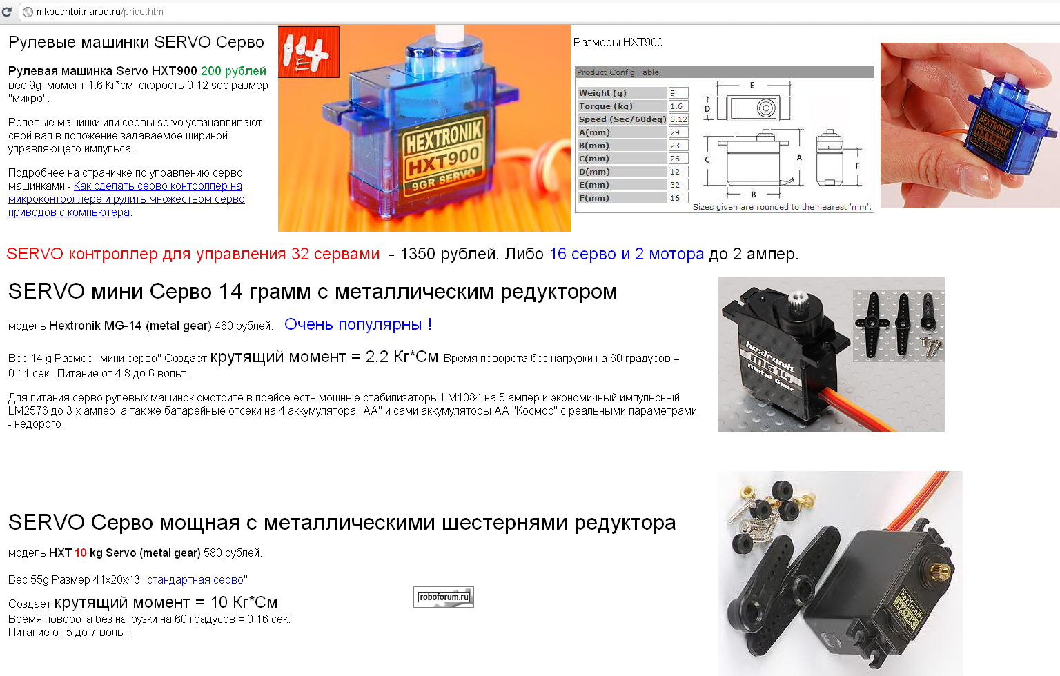 У него все нормально с сервами и с тем чем ими рулить с тем чем их заменить и с пультами ДУ и прочими радостями роботостроителей.Duhas писал(а):мм, а что там у Михаила по сервам ? )
