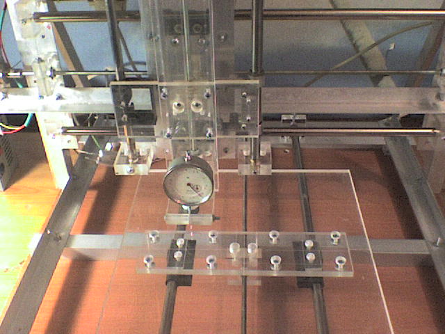Зато юстировка это просто какой-то кошмар. Замерил изменение высоты Z при перемещение по оси Y, погрешность по высоте на расстоянии 230 мм составила ровно 1мм :shock: Пришлось увеличить посадочные отверстия и выставить ось. Зато теперь отклонение 0 :shock: