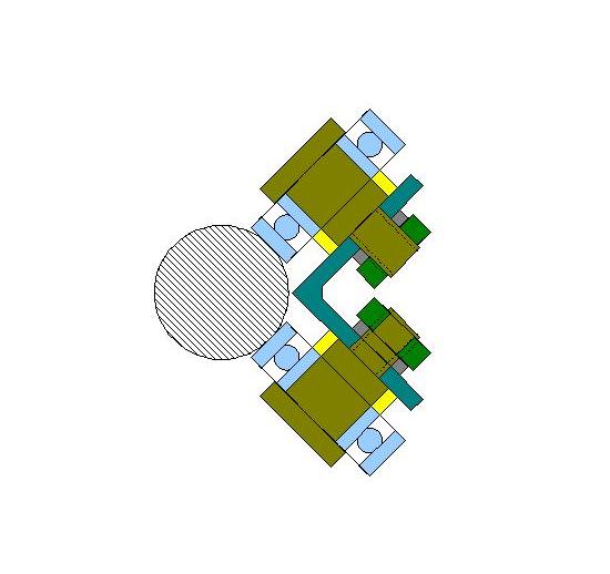 Ага, каретка, на картинке ее половина. вал, ось, труба (штрихованная) - направляющая. Левая направляющая крепится жестко, правая с возможностью регулировки. Каретка на подшипниках по трубам елозит. Видел такую конструкцию, где подшипники к монолитной каретке крепились. Решил упростить.