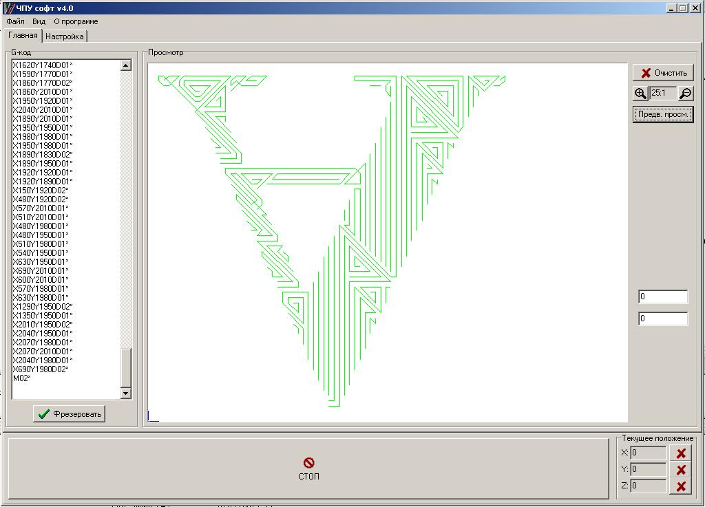 Если рисунок увеличить в 25 раз то видно как ведет себя фреза, изначально писал чтобы фрезеровать что-то по контуру, а потом понял что и залитые области получаются заполнены интересной фактурой.