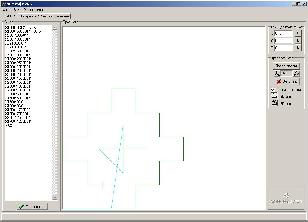 4. Поддержка G-code формируемого SprintLayout, пока только то что касается перемещения по прямой.